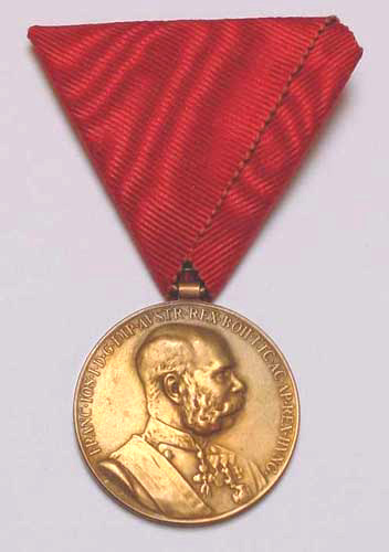 The following orders and decorations were awarded during the period 1848 to Austro-Hungarian servicemen and in some cases to personnel of allied nations during wartime. Most of the decorations had been in existence for many years prior to the outbreak of the First World War and indeed that war saw a proliferation in the number of different grades within specific orders. In particular most decorations were now awarded with the so-called "Kriegsdekoration" or War Decoration which took the form of an oak leaf wreath and the addition of crossed swords. Another fairly recent innovation was the the introduction of so-called "Kleine Dekorationen" literally small decorations which were informal or service dress variations of the more senior and expensive classes of the orders. They took the form of a miniature of the senior order affixed to either the triangular ribbon of a basic order or to the small ribbon when the decoration was not actually worn. The names of individuals who were awarded decorations were published in the various official military gazettes or "Verordnungsblätter" and in the case of the Common Army that was the Heeres-Verordnungsblatt (Personal affairs section). In each case the German language title of the order or decoration will be given followed by an English equivalent. Readers should click on the illustration to move to the relevant page. This section is still under construction and additional pages will be added on a regular basis. Qualification badges such as Marksmanship Lanyards and Aircrew Badges are not considered as decorations and will be dealt with separately: