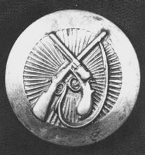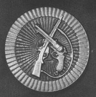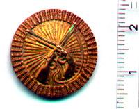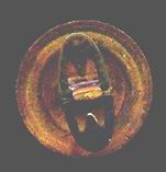 1st Type badge with centre painted black at unit level. | 1st Type badge - variant pattern with smooth rim. |