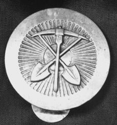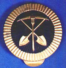corps. The brass cockade displayed in the centre an upright pick with two crossed shovels. The particular soldier had to