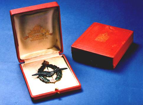 In order to give the corresponding incentive to complete field pilot training and to give prominence to these specialists, the "Feldpilotenabzeichen" or field pilot's badge was introduced in January 1913 at the suggestion of Oberst Uzelac. Although there was in some respects a tradition in the k.u.k. army of achievement and proficiency badges, this and all the following aircrew badges were an innovation, in that they could also be awarded to commissioned officers. Perhaps this was the reason for deviating from the normal pattern of a lanyard and cockade and the choice of a coloured and enameled pin back badge. The field pilot badge and the navy pilot badge were by the way, with the exception of the merit cross with and without the crown which had a rather civilian character, the only distinction which could be awarded to both officers as well as NCOs and men.
