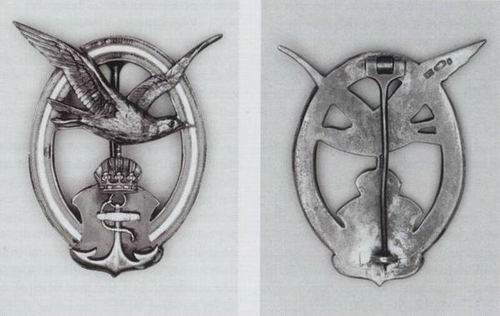 "The naval pilot's badge is worn analogously like the field pilot's badge, whilst it is to be noted, that the concurrent wearing of the naval pilot's badge and the field pilot's badge is not permitted."