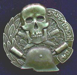 This badge of Sturm-Baon 27, can also be found in solid silver with a green enameled wreath |