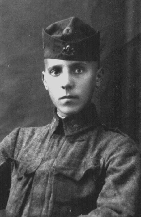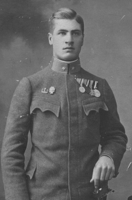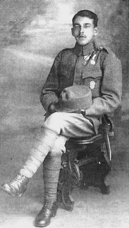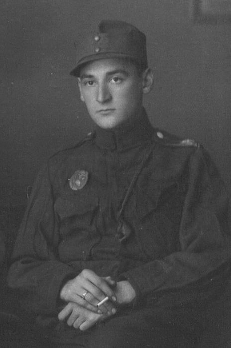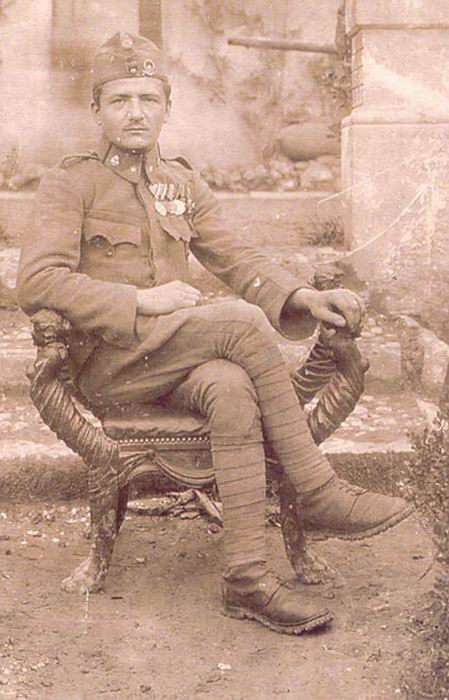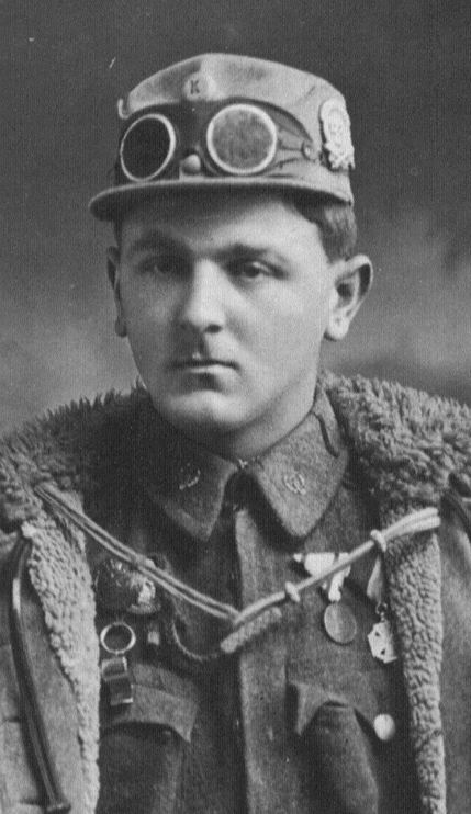 Feldwebel Walter Nödl (pictured in 1936) wearing his General Assault Badge with a red fabric underlay on his left breast. He was a member of IR 92 attached to the Sturmhalbbattaillon Riva and won his Golden Bravery Medal there during the attack on the Dosso alto on the 3rd of May 1918. | The late Professor Martin Busch as a Leutnant of Kaiserschützen Regiment number I wearing this type of General Assault Badge on his left pocket. |