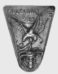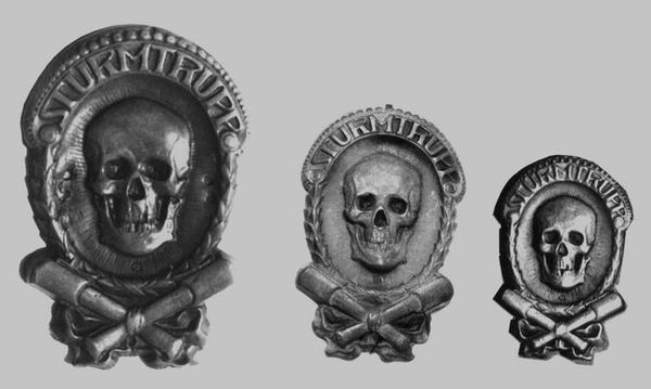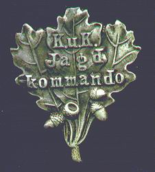 Cap-Badge of the "Jagdkommando" the precursor units of the later Sturmtruppen | Cap-Badge of the 14th Battalion of Honvéd-Infantry Regiment number 5 showing similar design to an Assault troop-Badge | Cap-Badge of the 3rd Battalion of Infantry Regiment number 85 using the skull-symbol. |