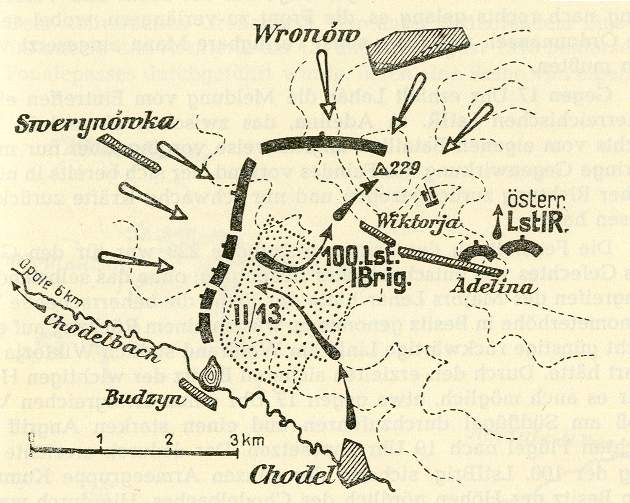 Following the outbreak of the war Anton Lehár assumed command of the 2nd battalion of the Honvéd-Landsturm infantry regiment number 13, which was subordinated to Generalmajor Georg Mihálcsics von Stolácz's Landsturm Infantry Brigade 100 of Armeegruppe Kummer which was recruited from the Pressburg area. On the 2nd of September 1914 the Russian 4th army counterattacked south of Lublin. Particularly hard hit was the position at Chodel which formed the boundary between General der Kavallerie Viktor Dankl's 1st army and Army Group Kummer. For his command of this battalion at Chodel and the holding of trig point 229 on the 2nd of September 1914 Major Lehár was to be decorated with the knights' cross of the Military Maria Theresia Order and to be ennobled with the predicate "Freiherr von" in August 1918.