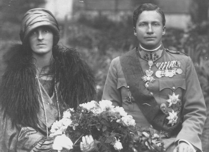 After the war he settled down at the family estate at Alscut in Hungary. During the communist revolution in 1919 he was taken as an hostage by the bolshevik republicans but soon liberated by the international pressure mainly by the British Royal Family. When Admiral Horthy came to power, Erzherzog Josef Franz decided to remain in Hungary where he married the daughter of King Friedrich August III. of Saxony, Princess Anna, in the summer of 1924. The photo attached to this article shows him, wearing the uniform of a Rittmeister of the Hungarian national army, with his bride. When the House of Lords was re-establised in 1927 he became a member. Erzherzog Josef Franz started to study business at the Technical University of Budapest and completed these studies with a doctors' degree. In addition to this he was a talented painter and wrote poems and plays for the theatre. In 1930 he published "Magyar dalai" a book with poems in the Hungarian language and his play "Kolumbus" (1935) was performed at Szeged, Raab (Györ) and Baja. When the Soviets came again to Hungary in 1944 he fled to Portugal where he died at Carcavelos on the 25th of September 1957. He was buried at the cemetery at Feldafing (Bavaria).
