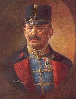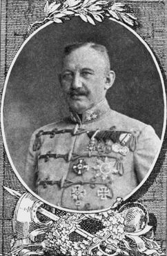 It was in the nature of a defence ministers post to be more a politician than an officer but in the circumstances of Hazai's  Hungarian appointment,  politics was the predominant factor. When the war started in 1914 Hazai, meanwhile promoted to General der Infanterie on the1st of November 1914, especially had his problems with the Hungarian politicians. They always thought that the Hungarian part of the monarchy had to pay more money for the war and that more of their soldiers died than all others. This was objectively not true but some circles in Hungary hated the Dual monarchy so much that they were prepared to risk losing the war in order to damage the Habsburgs. Hazai's troublesome duty was now on the one hand to fulfill his duty and to send the much needed new materiel - men and equipment  to the field and on the other hand to calm down the Hungarian opposition leaders playing with treasonable ideas. At times it seems that only the Kaiser and the Hungarian prime minister Tisza supported him during his "mission impossible"! On the 3rd of February 1915 he was awarded the military merit cross 1st class with war decoration followed be the award of the merit star of the Red Cross with war decoration. In June 1916 he received the grand cross of the order of Leopold, shortly followed by the award of the war decoration to this decoration on the 10th of August 1916. On the 25th of November 1916 he was awarded the large golden military merit medal (Großes Signum Laudis) and the title of Oberstinhaber of the k.u.k. infantry regiment number 46 by the Kaiser. His troublesome position seems clear if one noticed that General Hazai, as one of the most important Hungarian ministers never received the Hungarian Order of St. Stephan! The allied countries honored him during the war with the following awards: the Prussian iron cross 1st and 2nd class (1915), the grand cross with swords of the Bavarian military merit order (1915), the grand cross of the order of the crown of Württemberg (1916), the grand cross with golden star and swords of the Saxon Albrechts order (1916) and the Ottoman Medschidj order 1st class, the golden Imtiaz medal and the iron half moon - all three in 1917.