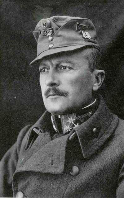 In August 1916 he was appointed commander of 180th infantry brigade which was renamed as the 2nd Kaiserjäger-Brigade in January 1917 and led this brigade until the 30th of September 1918. With his brigade he participated in the high alpine fighting in the Coston - Monte Majo - Laghi sectors and was further awarded the Silver Military Merit Medal, the Knight's Cross of the Order of Leopold, the Karl Troop Cross and on it's introduction in 1918, the wound medal with one stripe for his 1914 wound. He additionally held the following foreign decorations: The Knight's Cross of the Royal Belgian Order of Leopold and the Royal Spanish Military Merit Order 1st Class. Promoted Generalmajor on the 15th of December 1918 he retired as a Feldmarschalleutnant and died on the 31st of July 1957 in Vienna.