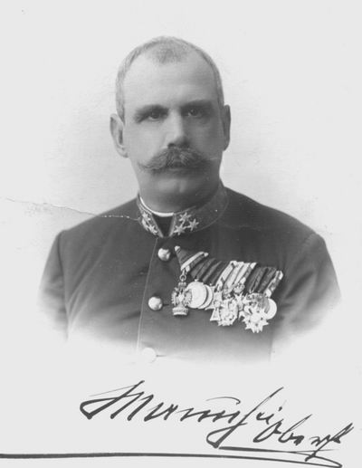 On the 1st of May 1885 Karl Manussi was transferred to the Styrian Feldjäger Bataillon number 27 but again his old wounds troubled him. Between the 1st of August 1885 and the 31st of September 1886 he was again on convalescent leave on half-pay status. On the 1st of October 1886 he returned to this unit as a company commander until the 15th of November 1888. On the 11th June 1887 he married Marie Gräfin Pace, Freiin von Friedensberg (1850-1928) at Thurn-Gallenstein (Krain) but this marriage did not produce any children. From 1887 until the 31st of October 1889 he was engaged as president of the Administration Commissions number 11 at Tarvis and number 9 at Villach. After taking part on the tactical officers staff ride through Upper Carniola and Istria he was appointed temporary commander of his battalion. In the first half-year of 1889 he successfully passed the course for aspirant field officers and than took over command of the 10th Battalion numberof the Tyrolean Kaiserjäger regiment and the Military Station at Roveredo until the 23rd of November 1890. On the 1st of November 1889 he was promoted to Major in the Tiroler Kaiserjäger Regiment. From the 23rd of November 1890 to the end of 1892 he was engaged as Ergänzungsbezirkskommandant (recruiting district commander) and commander of the Ersatz-Bataillon (replacement battalion) of this unit at Trient. But again his old wounds interrupted his career and at the end of October 1892 he was transferred to infantry regiment number 4 at Vienna without any command to recover his health but this was not enough and so yet again he was sent on leave on half-pay status for a further 6 month until April 1894.