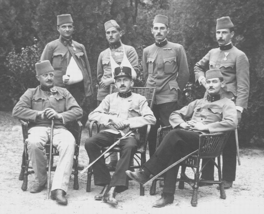 Convalescing officers of the b-h infantry. The Leutnant standing on the far right is Leo Wittmann |