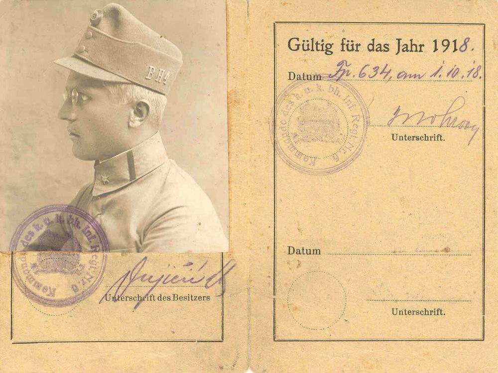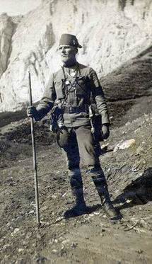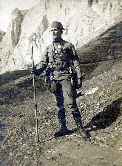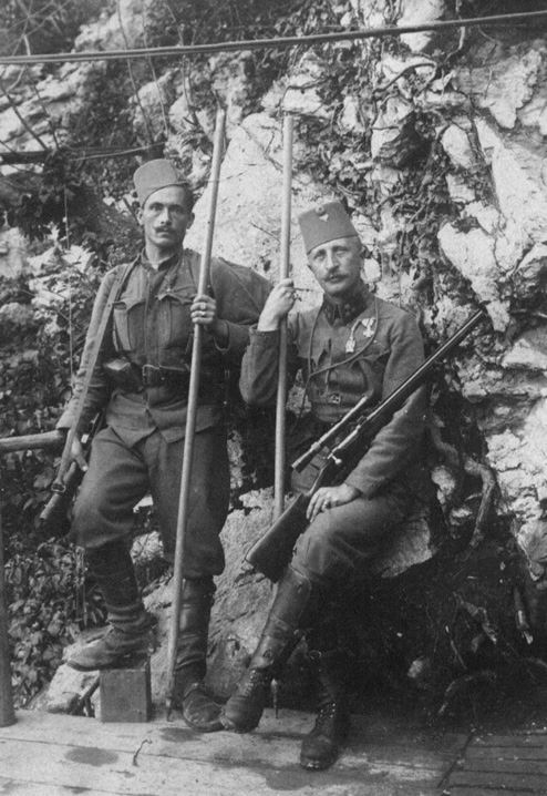 At the outbreak of the war in August 1914 the establishment of the Bosnian-Herzegovinian Infantry stood at four regiments each of four battalions and one battalion of Jäger. During the course of the war four more regiments (5 - 8) and seven independent Jäger battalions were raised numbered 2 - 8 although by June 1918 battalions 5 - 8 had been incorporated into the new regiments and all the regiments were now three battalions strong. The Bosniaken earned a formidable reputation on the southwestern front during the Isonzo fighting and the following photographs show members of this elite band during the war. We are particularly grateful to Mladen Lukic for providing the images of Oberleutnant Mijo Lukic and Leutnant Mihovil Vujicic seen in the following photographs.