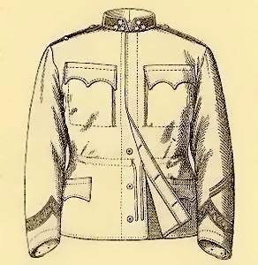 Two basic versions of the "Bluse" or field jacket were introduced for wear in the field: a Summer and a Winter version. Very modern in look the original uniforms were more of a blue-grey similar to the horizon blue of the French Army than to any shade of field grey. The Winter garment was made of basic cloth with six concealed black zinc buttons down the front centre. The jacket was fly fronted with two breast and two hip pockets with scalloped flaps. Badges of rank were worn on patches on a stand collar. Fitted to some but not all blouses was a shoulder roll on the right shoulder to facilitate the carrying of a rifle. Officers' blouses were not fitted with shoulder straps. Photographic evidence would suggest that many Officer Aspirants and Deputy Officers also followed this practice.