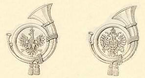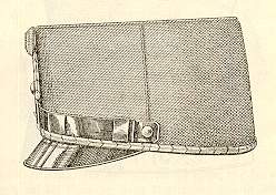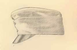 The most common form of headdress as worn in service dress and in the field was the pike-grey kepi or Kappe. Usually fitted with a black leather peak and fastened at the front by two small buttons. On the centre front of the officers' cap was a bullion circular badge with the Emperor's cypher. Officers and senior aspirant officers (Fähnrich) of Jäger formations also wore additionally a small Jäger horn beneath the bullion badge with distinctions as shown in the following table. The Feldjäger battalions wore the battalion number within the horn. NCOs and private soldiers wore the circular badge in metal: