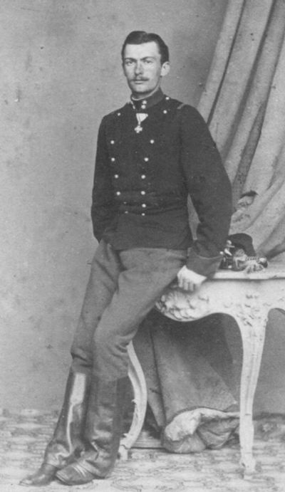 Ernst Graf Fünfkirchen entered military service as an Unterleutnant 2nd class in November 1856 in ulan regiment "Fürst Lichtenstein" number 9 where his older brother Ferdinand held the rank of Oberleutnant. This regiment was raised in 1640 as a dragoon regiment, transformed into a chevauxlegers regiment in 1777 than transformed into ulan regiment number 9 in May 1851 and finally it again became a dragoon regiment (number 10) in 1873. Soon the excellent rider was promoted to Unterleutnant 1st class in November 1857 and Oberleutnant in April 1859. For his dashing performance as an Aide de Camp during the battle of Solferino he was honored with the Military Merit Cross with war decoration - the only decoration in his regiment because the ulan regiment number 9 was not engaged during the war of 1859! In March 1861 he became a member of the knightly Johanniter Order of Malta. Normally Ernst Graf Fünfkirchen would have been promoted to Rittmeister 2nd class in the autumn of 1864, but regimental duty drilling recruits in the Galician province were too boring a prospect for a dashing young cavalry officer and so he volunteered for Mexico before this promotion took place.
