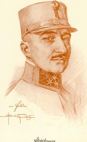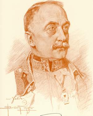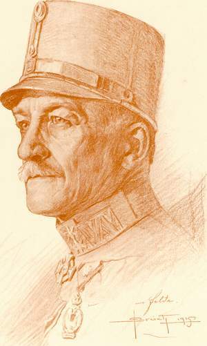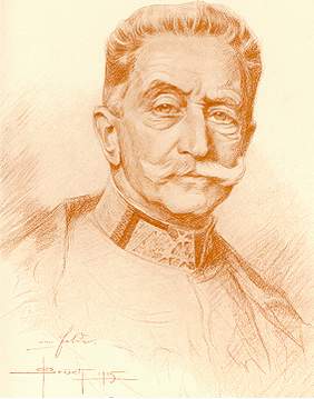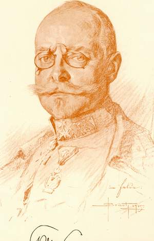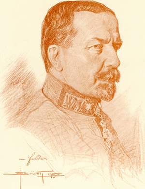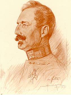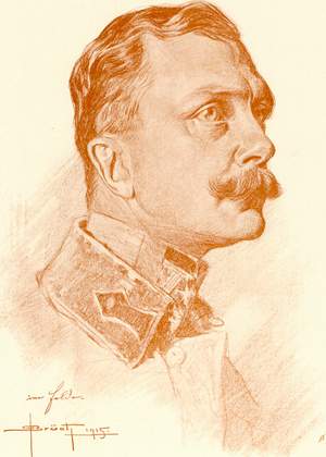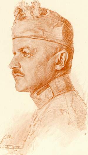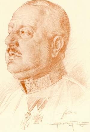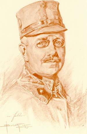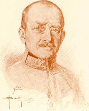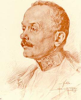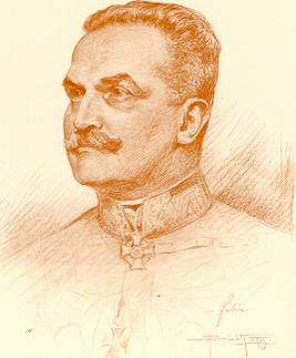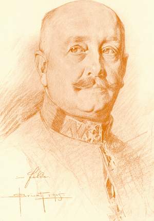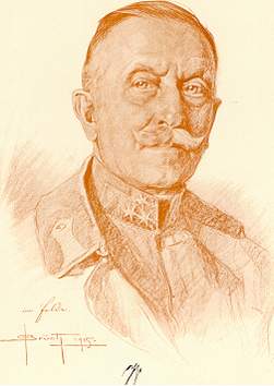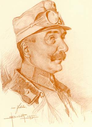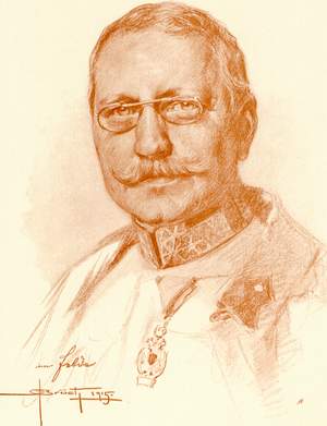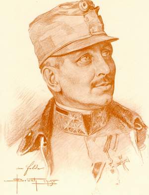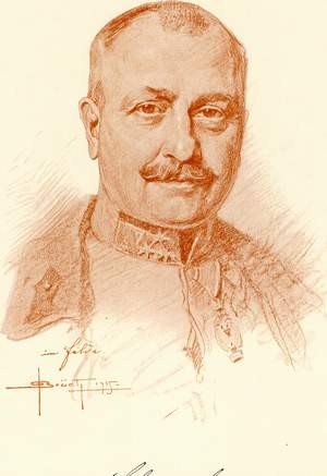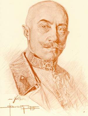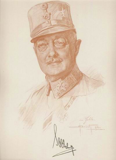 The following portraits of many of the senior Austro-Hungarian commanders were rendered by the famous military artist Hauptmann Oskar Bruch in early 1915. A set of five folders each containing about forty likenesses was produced and titled "Unsere Heerführer". The ranks used in the table below are the last held ranks at the wars end and the illustrations illustrate the rank held in early 1915. Not only are the illustrations finely drawn but they also depict the rank insignia of the k.u.k. army extremely well. Should any interested reader like a full size A4 scan of any of the Bruch portraits I would be more than happy to email them.